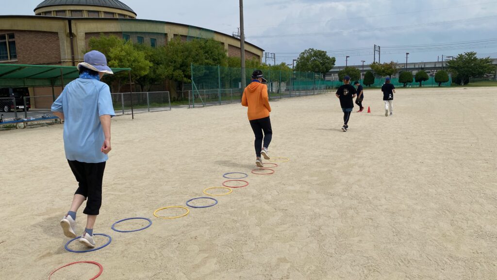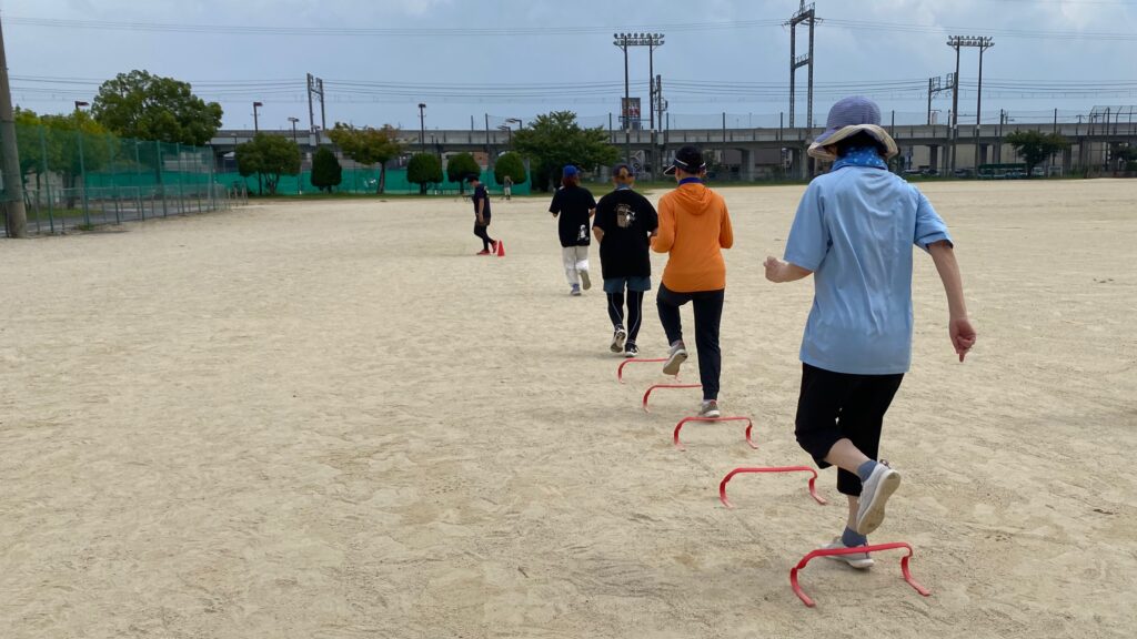9月10日 朝コース 2025 9/10 活動の様子 少し陰り気味ではありましたが、9月と言えどまだまだ日差しも強く汗ばむ気候です。アップの腿上げハードルから、いつものミニハードル。そのあと今日は棒渡りで体幹トレーニングです。そしてリング走で神経系を鍛えて。最後はストレッチで締めくくりました大人会朝コースは、水曜日午前10時30分から和邇市民グラウンドです。 活動の様子